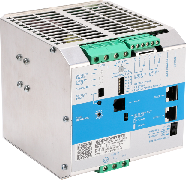 Řada průmyslových napájecích zálohovaných zdrojů CBI (někdy též označované jako DC-UPS) od tradičního italského výrobce ADEL System přináší ty nejlepší technologie i do kategorie cenově dostupných zdrojů. Model CBI2801224A je AC/DC zdroj se vstupním napětím o širokém rozsahu 115-230V a stejnosměrným uživatelsky volitelným výstupem 12 nebo 24V, tedy s možností připojit zařízení několik různých typů zařízení s celkovým příkonem až 280W. Ke zdroji se navíc dají připojit baterie a napájené zařízení tak zůstane v provozu i při výpadku síťového vstupu.