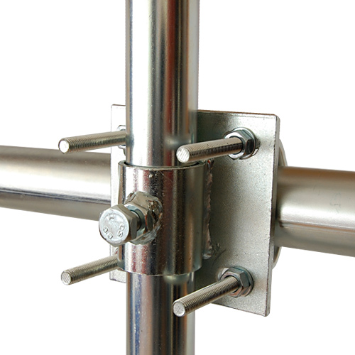 Křížová spojka dvou trubek o průměrech 48 mm a 20 - 76 mm. Povrchově upraveno galvanickým zinkem. Další informace