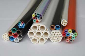 Duramulti bundles (DM) contain different variations of microt runs of various dimensions, which are sheathed (and thus create a bundle). They are designed for easy placement in the ground (DB) or other protected routes (DI). All contained microtubes in DM have longitudinal grooves (smooth inner wall) and a steady smooth layer of Silicore, which reduces the coefficient of friction when installing the cable.