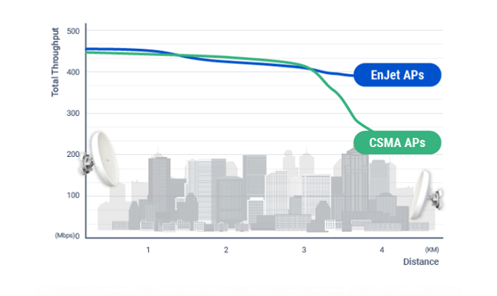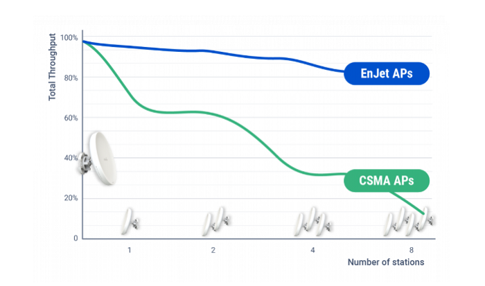 EnGenius EnJet EnStationAC je špičkovou jednotkou pro profesionální PtP a PtMP spoje v pásmu 5 GHz. Použitý standard 802.11ac Wave 2 s proprietárním TDMA protokolem EnJet umožňuje nasazení i na aplikace náročné na stabilitu a latenci. Pokud je technologie EnJet povolena, přiděluje každé stanici jasně definované časové sloty, čímž poskytuje rychlejší a stabilnější výkon a vyhýbá se problému skrytých uzlů. S dvojnásobně polarizovanou směrovou anténou s vysokým ziskem 19 dBi je možné tvořit spojení bod-bod až na 5 kilometrů. Integrovaný sekundární PoE port může navíc sloužit k napájení dalšího zařízení kompatibilního s PoE, jako je například IP kamera.