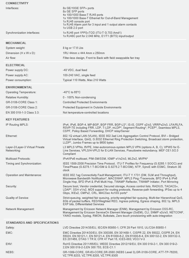 Ericsson Router 6672 48 V DC System + Base Package - komponenty