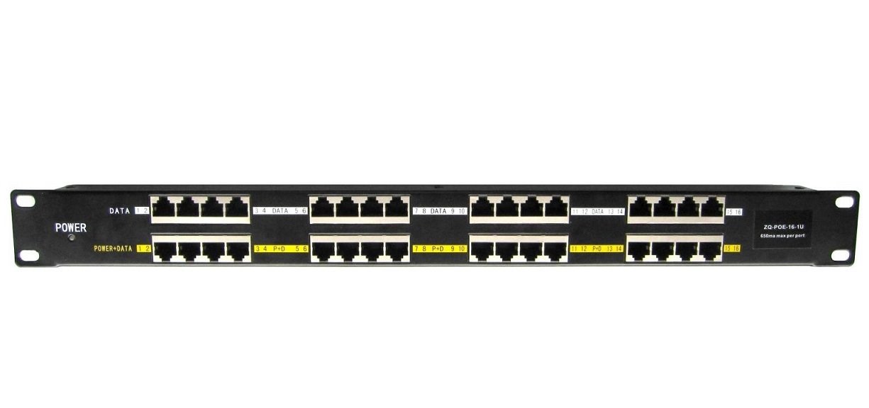 Panel up to 19"seagulls integrating 16 gigabit shielded active Poe injectors with power range 24-57 V .