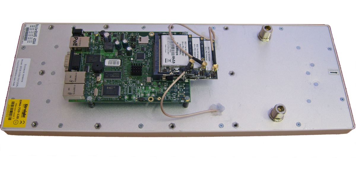 Complete unit with integrated 17 dBi sector antenna (90 °) using RB433AH and (with 3xMiniPCI Alpha card).More information