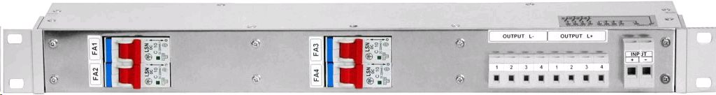 DC power bar, 19"1U, combining 4x input 18-60 V/16 and up to 1x output, signaling-4x green LED-presence of voltage on each inputMore information