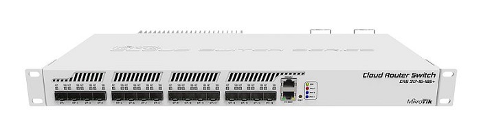MikroTik Cloud Router Switch CRS317-1G-16S+RM, 800 MHz CPU, 1 GB, 1x GLAN, 16x SFP+cage, ROS L5, Dual PSU,1U Rackmount