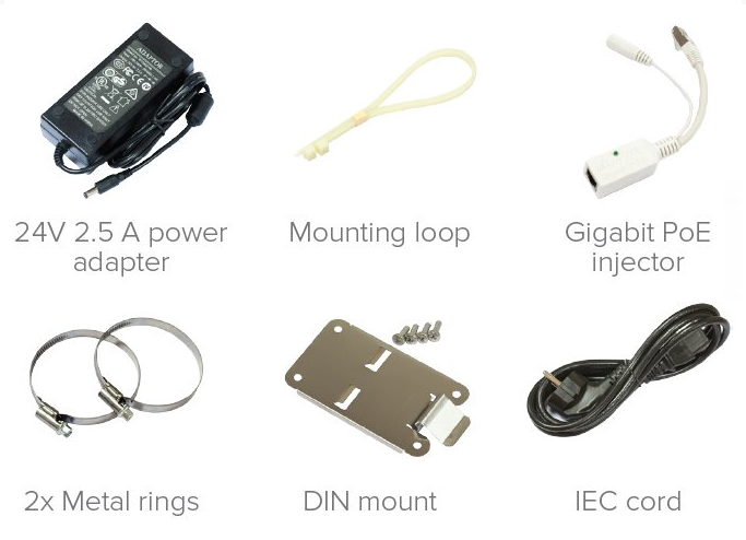 PowerBox Pro is an outdoor device with 5x Gigabit LAN with the possibility of POE (Port 1 for Poe In, 2-5 for POE Out), one SFP port and power connector. PowerBox Pro is powered by QCA9557 processor with 800 MHz clock, 128 MB RAM and flash storage with 16 MB