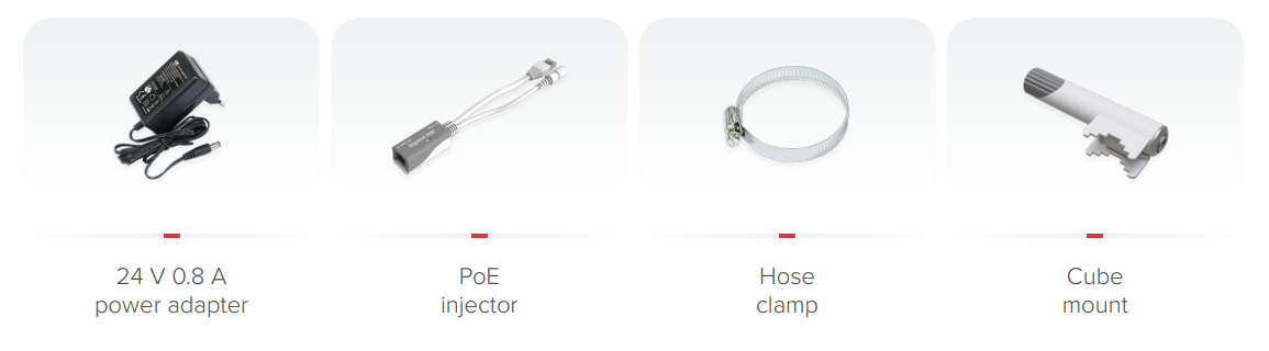 The advantage of this preconfigured pair is that it can be commissioned without any configuration - all you have to do is turn on and point the units at each other, the rest of the settings and associated security have already been done by the manufacturer. The Cube 60Pro ac has 1x 10/100/1000 Mbps Ethernet with support for active PoE 802.3af / at (injector included).