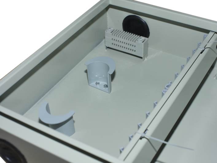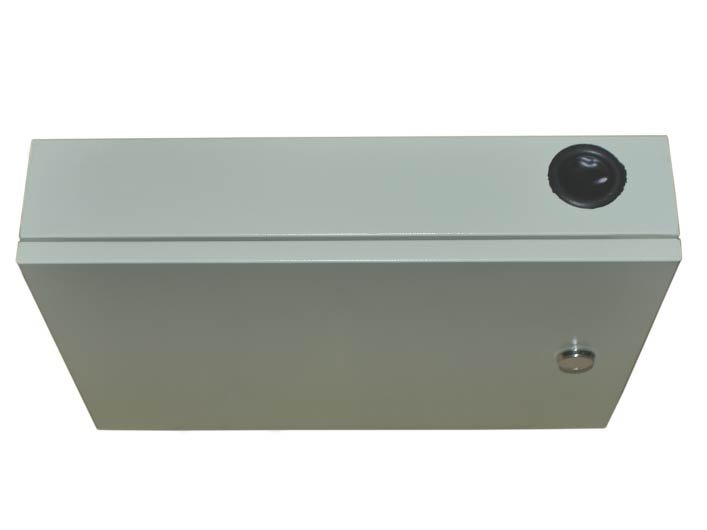 Optický plechový rozvaděč, 1x zámek. Konstrukce: pro max. 48 ks SC simplex spojek. Barva: šedá; Krytí IP65 (vnější prostředí); Obsahuje: 2x optická kazeta pro 24 svárů,; kotvící šrouby; smršťovací trubičky; 8x vstup pro optický kabel. 48x ochrana svárů...Další informace