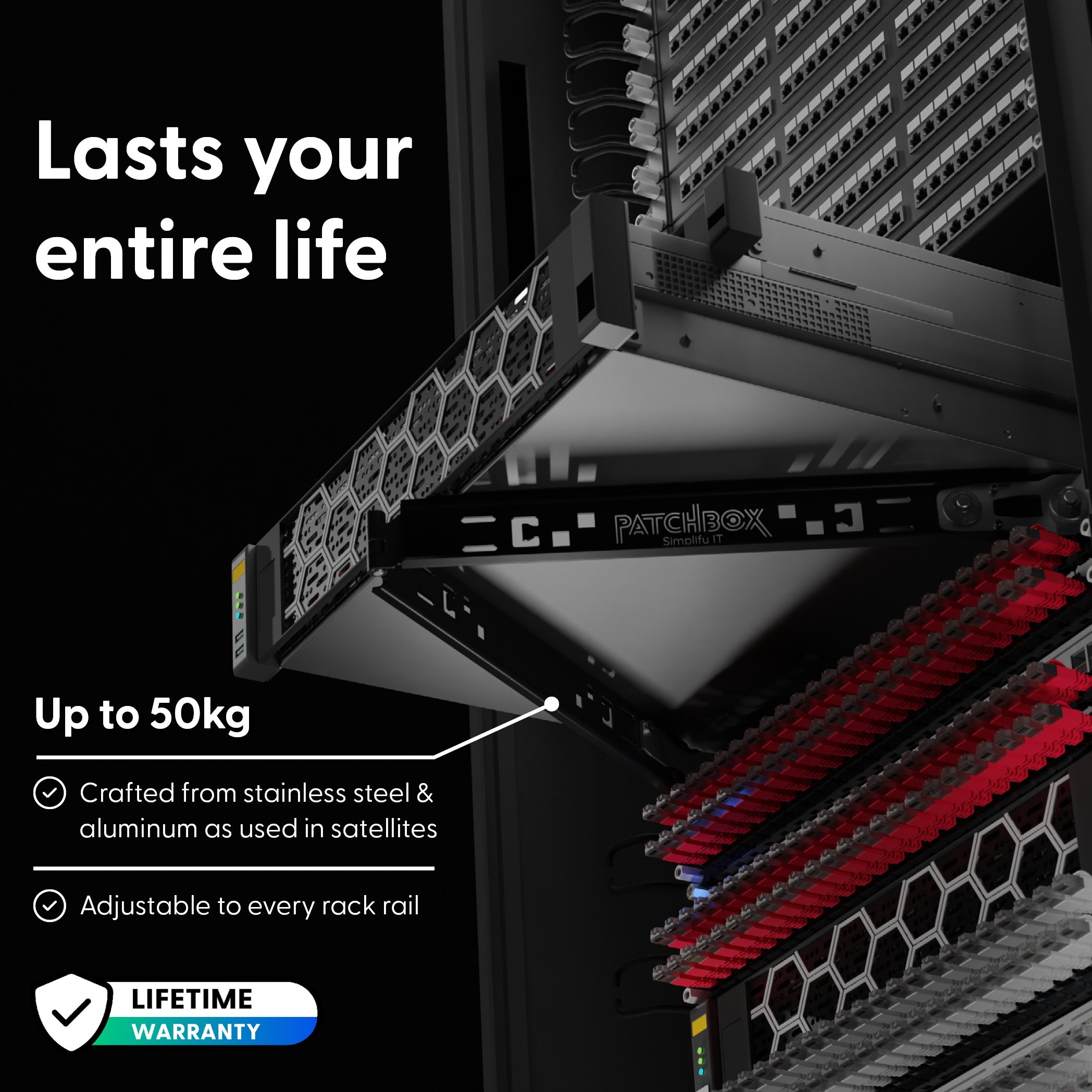 PATCHBOX.ONE Setup.exe je podpěra při instalaci těžkého hardwaru do 19" rozvaděčové skříně. Unese a podepře switche, těžsí propojovací panely apod. až do hmotnosti 50 kg.Další informace