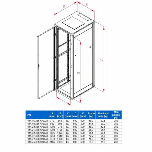 RACK Triton, 19", 37U, 600x600mm, stand-RMA-37-A66-CAX-A1