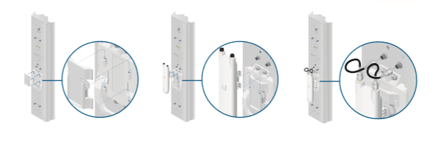 UAP-AC-M je navržené tak, aby se snadno montovalo na zeď, stožár a díky redukci, která je součástí balení, i na antény Ubiquiti s Rocket-kitem.
