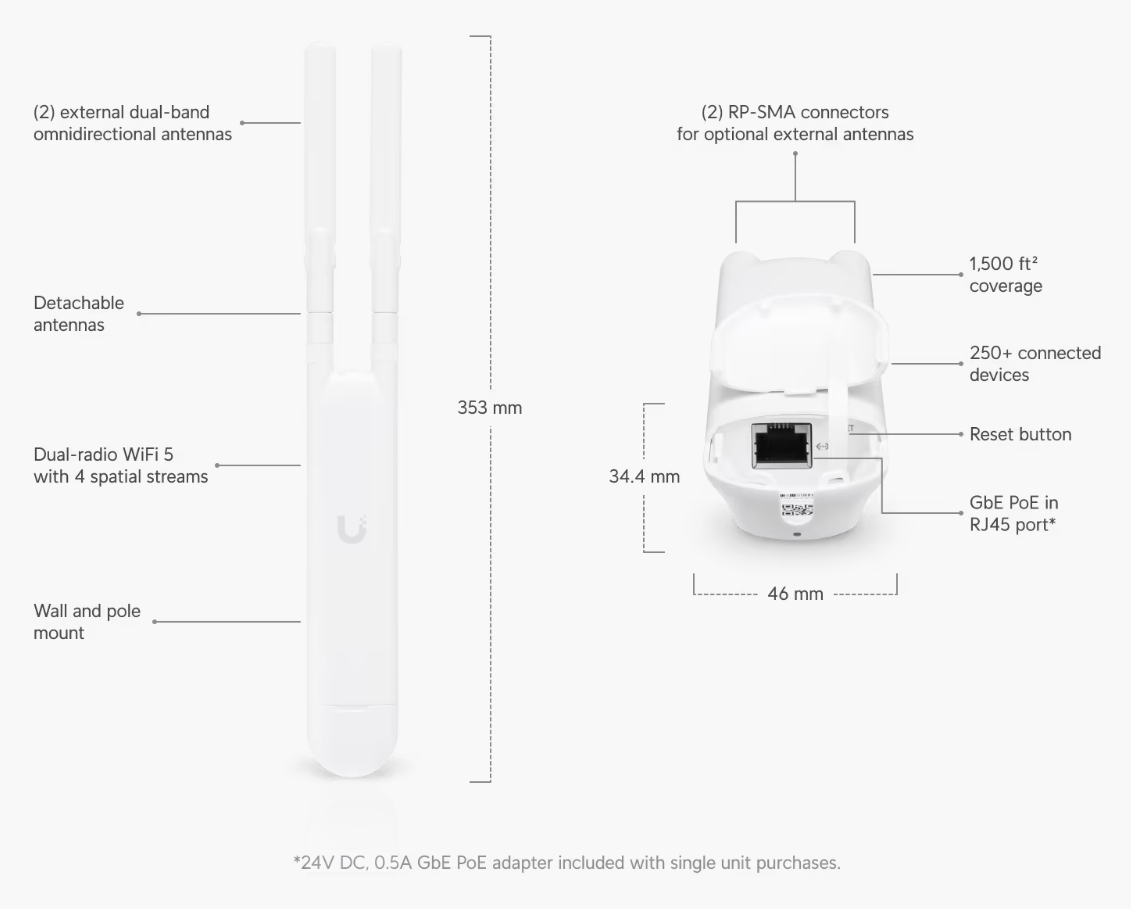 Ubiquiti UniFi AC Mesh je bezdrátový access point 2x2 MIMO s modulační rychlostí až 300 Mbs pro pásmo 2.4 GHz (802.11b/g/n) a až 866 Mbps pro pásmo 5 GHz (802.11a/n/ac). Vzhledem ke svým minimalistickým rozměrům se vleze i do menších prostor.Další informace