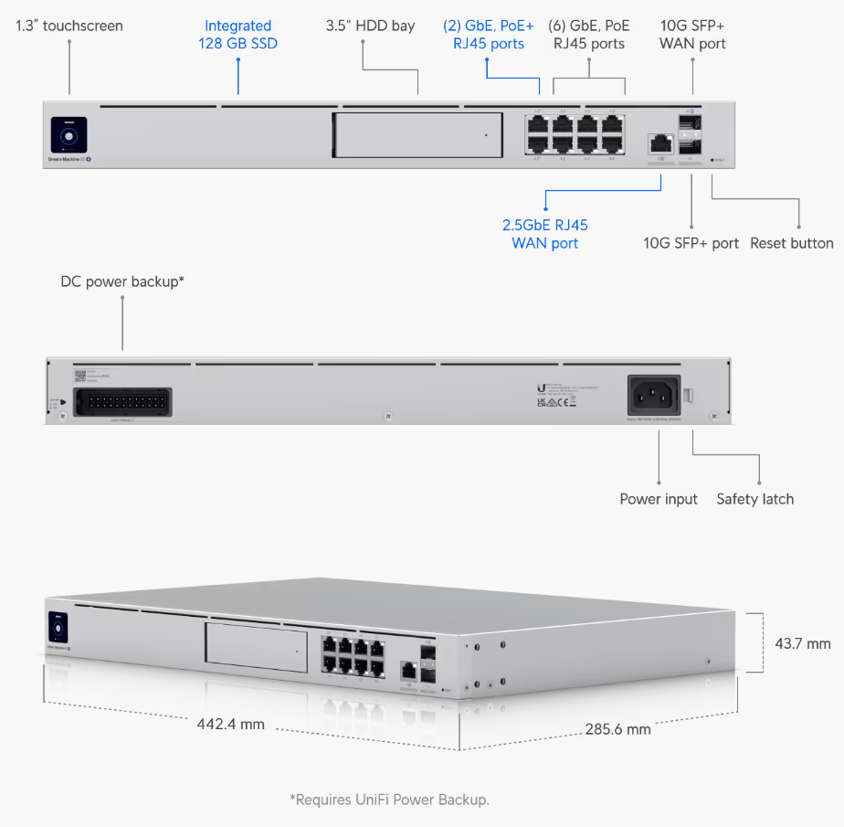 Ubiquiti UniFi Dream Machine Special Edition je managovatelný 8-portový Gigabitový PoE Switch s jedním SFP/SFP+ portem a podporou VLAN. Nabízí možnost více WAN přes 2.5 Gigabitový ethernet nebo SFP/SFP+ port.Další informace