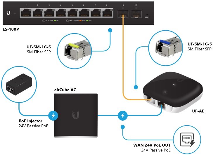 UBNT Active Ethernet je gigabitový opticko-metalický převodník, který umožňuje poskytovatelům internetu dovést optický kabel k zákazníkovi a připojit jeho domácí síť bez potřeby zařízení se SFP slotem.Další informace