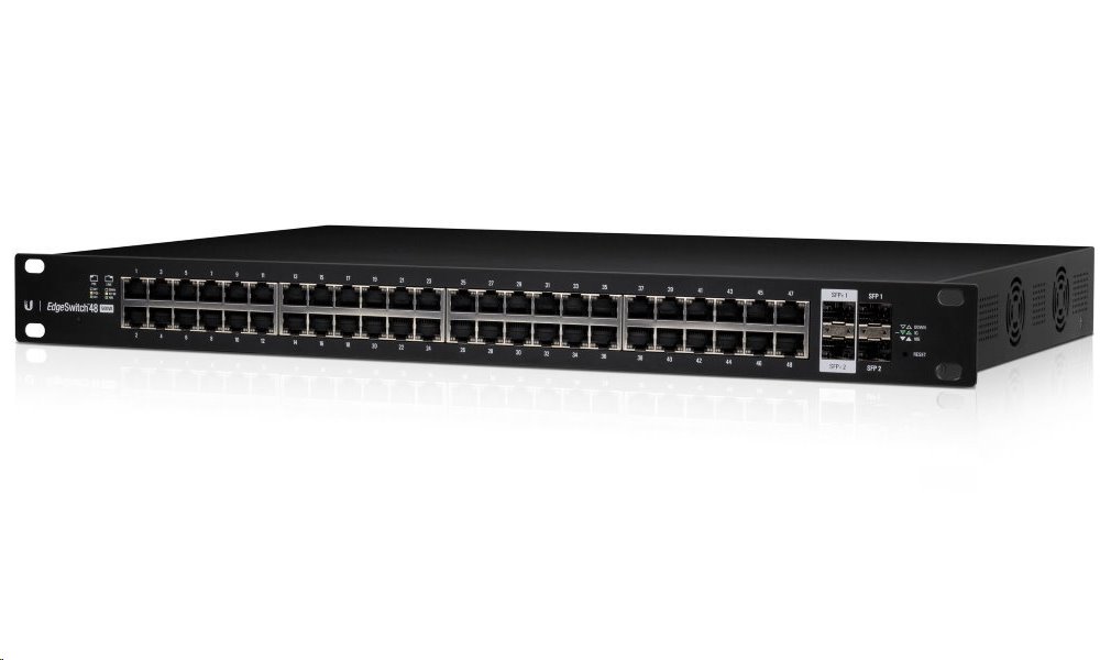 UBNT EdgeSwitch 48 PoE (500W) je Gigabitový L3 PoE switch v 19" rackmount provedení s maximálním výkonem PoE napájení 500 W. Managovatelný switch s 48 gigabit metalickými porty + 2 gigabitové SFP porty + 2 desetigigabitové SFP+ porty.Další informace