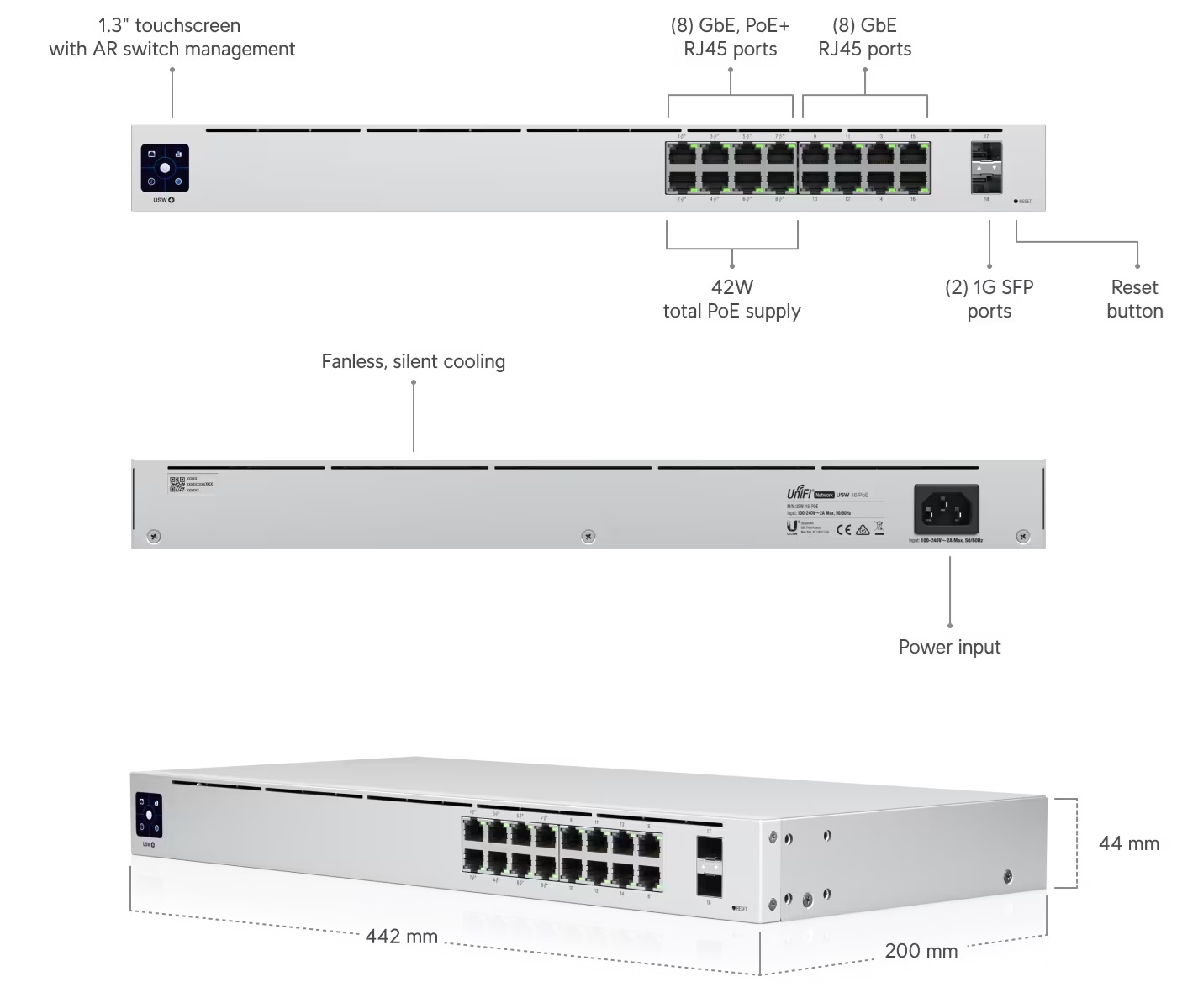 UBNT UniFi Switch 16 PoE je managovatelný Gigabitový switch s 16x Gigabit LAN porty, z čehož 8 portů podporuje 802.3af/at PoE-Out. Navíc disponuje dvěma porty SFP s maximální přenosovou rychlostí 1 Gbps.Další informace