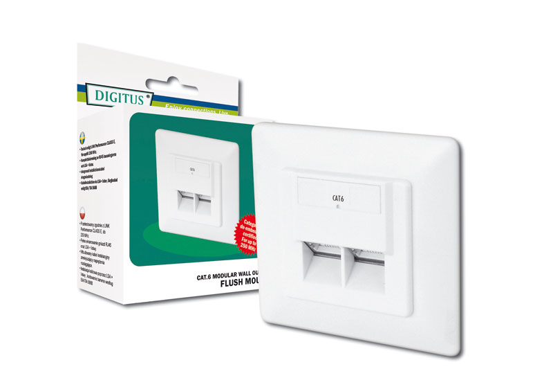 Stíněná síťová zásuvka Digitus pro zakončení 1 Gbps sítě vhodná pro použití do zdi (pod omítku resp. zarovnaná s omítkou)Další informace