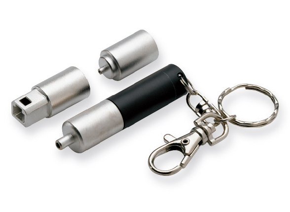 Velmi malé rozměry 64x12mm, vhodné jako přívěsek na klíče, dosvit 5km, baterie 3xLR41/AG3.