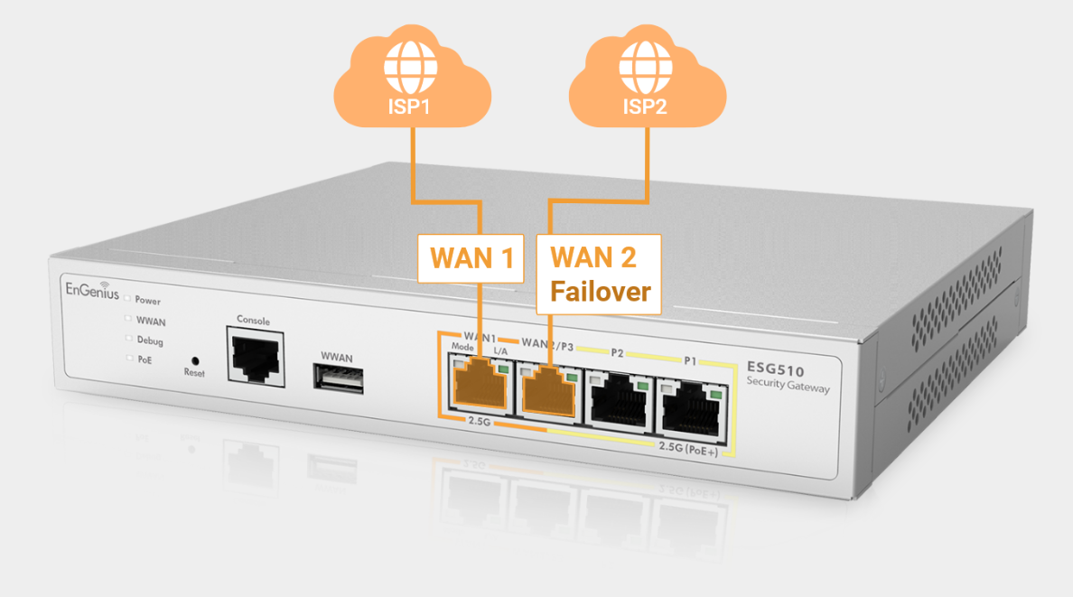 SD-WAN Gateway EnGenius ESG510 dokonale sjednotí technologii v síti postavené na prvcích EnGenius a poskytne tak neuvěřitelně snadné nastavení, zabezpečení na podnikové úrovni a komplexní síťové řešení, které lze cloudově spravovat naprosto odkudkoli. EnGenius ESG510 může fungovat ve dvou režimech - transparentní bridge s možností firewallu a nebo v režimu výkoného routeru. Zde krom klasických funkcí jako je firewall, DHCP server nebo Site-to-site VPN/Client VPN nabízí i 2 nezávislé WAN porty s možností load balancingu a USB vstup pro připojení LTE/5G modemu´jako třetí záložní linky. To vše pomocí konfigurovatelných 1/2.5G Ethernetových portů v kompaktním chassis vybaveném TPM chipsetem pro maximální zabezpečení a centrální cloudovou správou přes EnGenius Cloud.