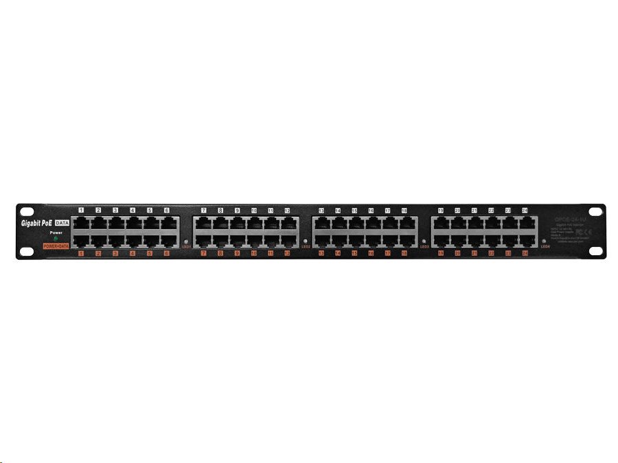 Panel do 19palcového racku integrující 24 gigabitových stíněných aktivních PoE injektorů s napájecím rozsahem 24 - 56 V.Další informace