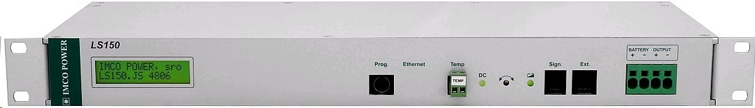 Zdroj LS150 je určený pro montáž do 19“ rámů. Připojení zdroje na síť je přes pohyblivý přívod ze zadní strany. Svorky pro připojení baterie a výstupu (6 mm2), signalizace a přehledy jsou na přední straně.