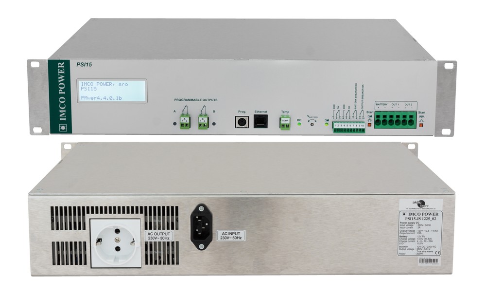 The IMCO POWER PSI15.JS 4815_04 is an unique device for power backup. It has 48 V DC output , but also includes an inverter module that produces pure sine 230 V / 50 Hz / 400VA.Další informace