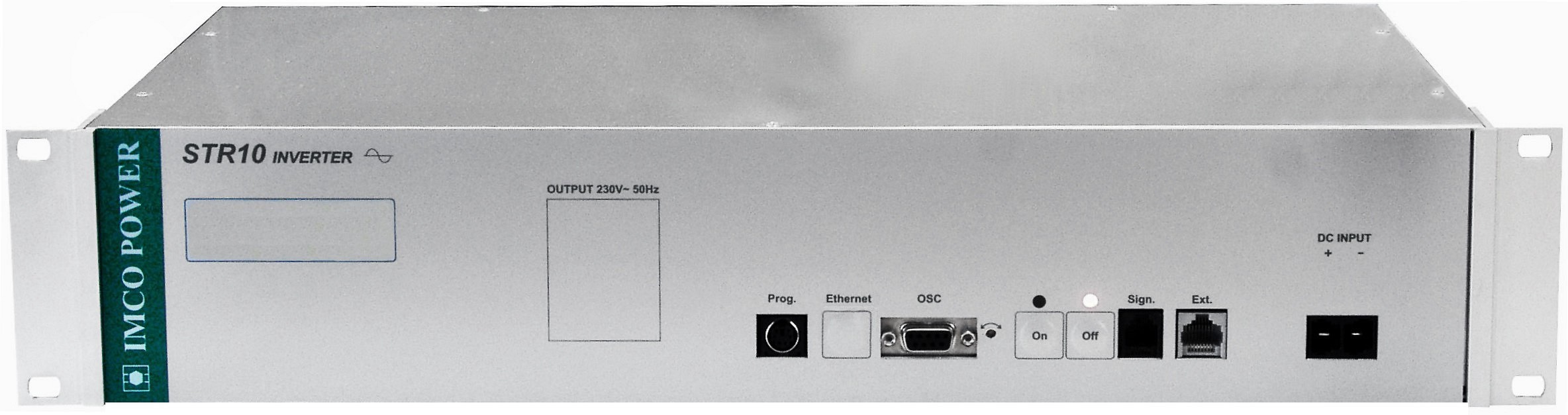 Invertor typu STR10 konvertuje napětí 110VDC (82-130 V) na střídavé napětí 230V~50Hz se sínusovým průběhem. Zařízení disponuje ochranou proti přetížení, podpěti na vstupu, zkratu na výstupu a tepelnou ochranou.