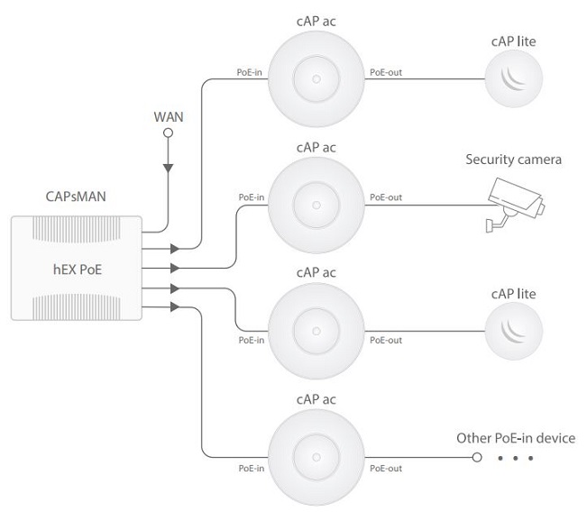 Narozdíl od tradičního řídicího softwaru, který vyžaduje samostatné PC, CAPsMAN běží na existujícím RouterBOARD zařízení ve vaší síti!