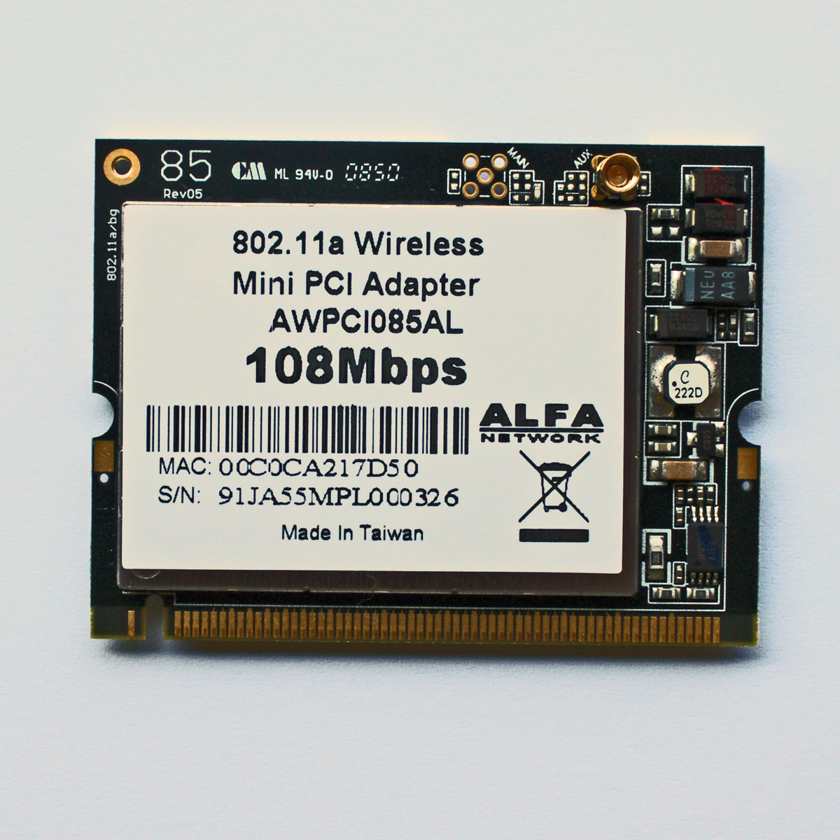 Výkonná mini PCI karta od společnosti ALFA Network určená pro pásmo 5 GHz vybavená Turbo modem s teoretickou přenosovou rychlostí 108 Mbps