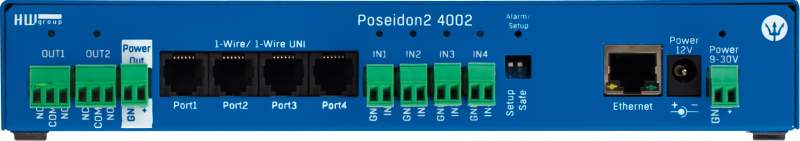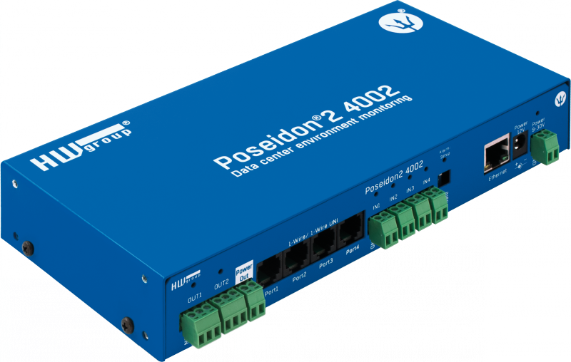 Vlajková loď společnosti HW group - Poseidon2 4002. Komplexní zařízení pro vzdálený dohled provozních podmínek (prostředí) v datacentrech, serverovnách, zdravotnictví, skladování. Může fungovat zcela samostatně, nebo jako součást komplexního monitorovacího systému (SNMP nebo HWPortal.cz online aplikace). .