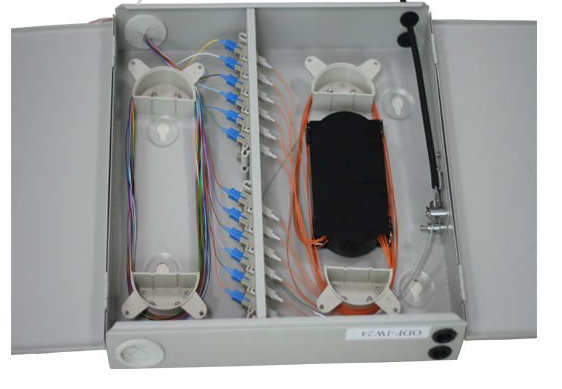 Rozvaděč kovový, optický, jednokřídlý se zámkem, vybavený čelem pro 24x SC; a 2x optickou kazetou, včetně hřebínků pro 4x6 svárů. Hlavní vlastnosti: Pro 24 simplex SC spojek; Panel pro spojky je vyjímatelný; Dodávka s 2 kazetami, každá pro 12 optickýchDalší informace