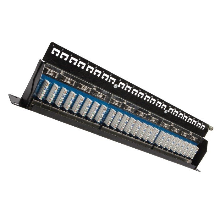 Panely jsou pevné, spolehlivé a poskytují dlouhou životnost. Standardní barva patch panelu je černá. Velikost v datovém rozvaděči je 1U.