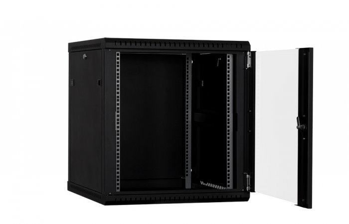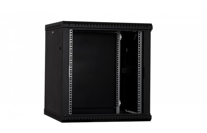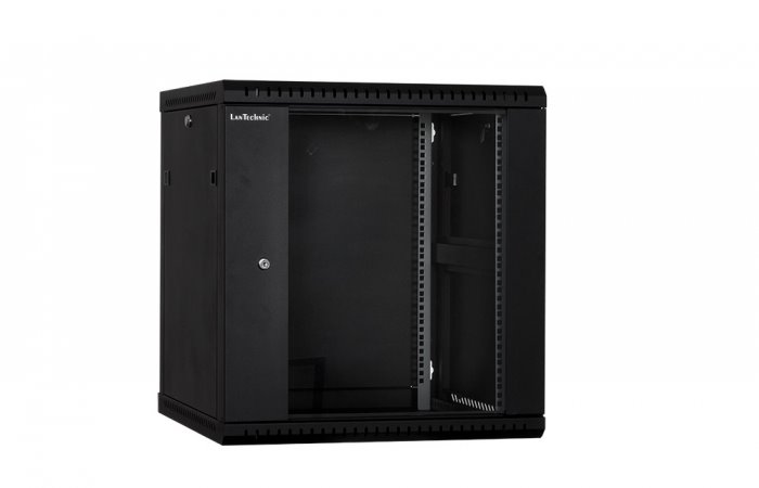 RACK LanTechnic, 19", 12U, 600x600mm, prosklené dveře, nástěnný, jednodílný, černá