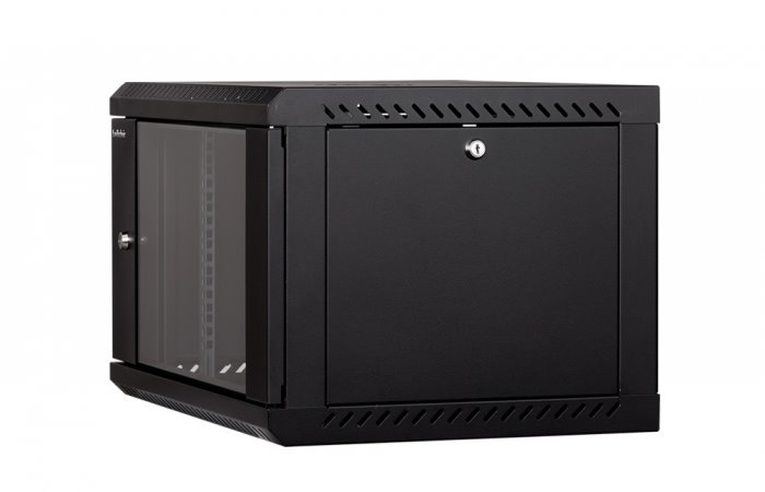 RACK LanTechnic, 19", 6U, 600x450mm, prosklené dveře, nástěnný, jednodílný, černá