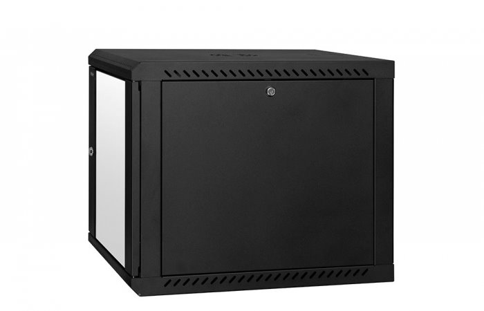 RACK LanTechnic, 19", 9U, 600x450mm, prosklené dveře, nástěnný, jednodílný, černá