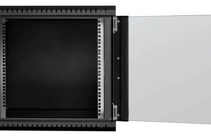 Nástěnný rozvaděč v černé barvě s prosklenými dveřmiDalší informace