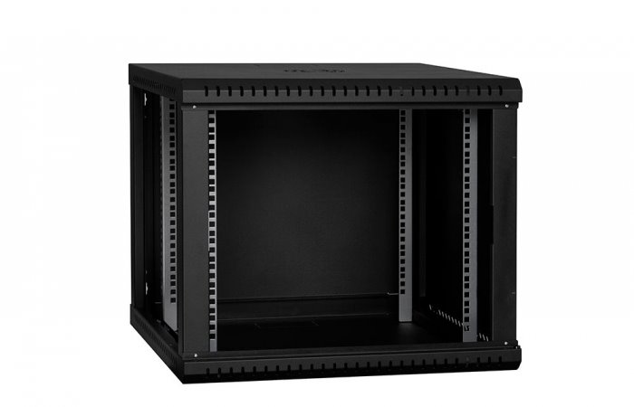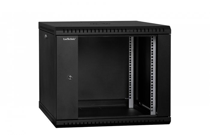 RACK LanTechnic, 19", 9U, 600x600mm, prosklené dveře, nástěnný, jednodílný, černá