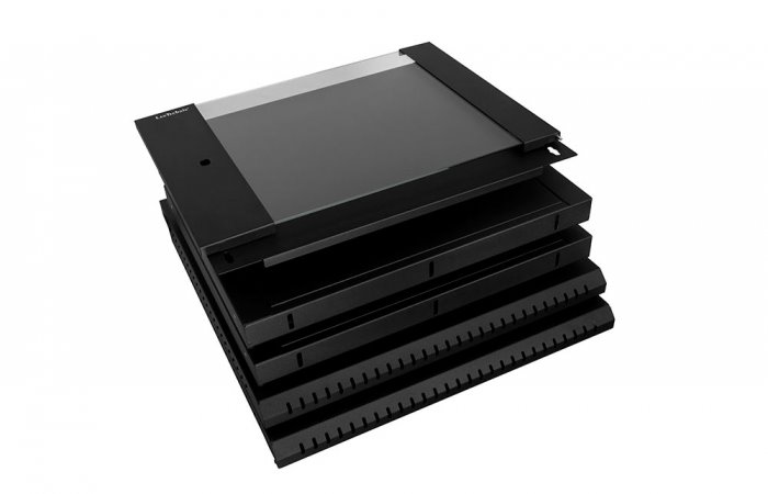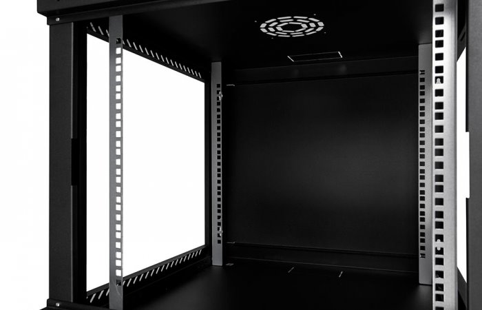 Rozvaděč má ventilační otvory pro zajištění dostatečného proudění vzduchu. Dodatečně lze do horní části namontovat ventilátor. Rack je dodáván rozložený.