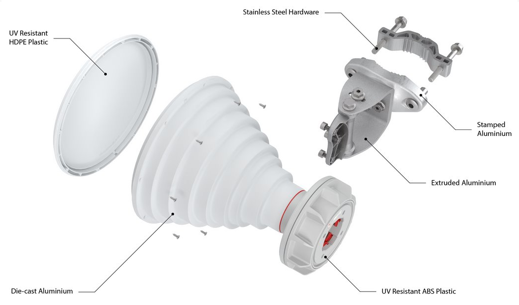 Symetrické sektorové antény jsou vytvořeny pomocí pevné kovové konstrukce. Při výrobě byly použity ty nejlepší dostupné materiály: odlitky z hliníku, vysoce kvalitní ABS plast a nerezová ocel.