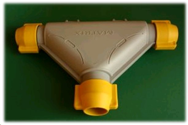 Umožňuje odbočení HDPE trasy ze dvou směrů a zároveň odbočení a propojení mikrotrubiček uvnitř spojky, vodotěsná vodní sloupec 2m, pro průměry 40/40/40 mm, půlené/ rozebíratelné matice; použití v distribučních boxech pro trubku o průměru 40mmDalší informace