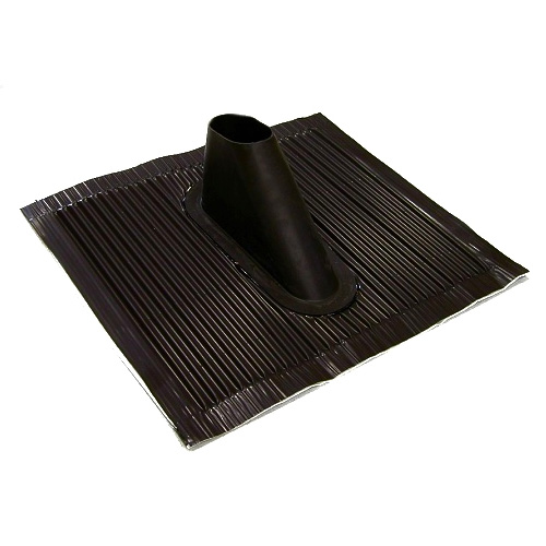 Hliníková černá střešní taška umožňující prostup stožáru přes střechu.Další informace