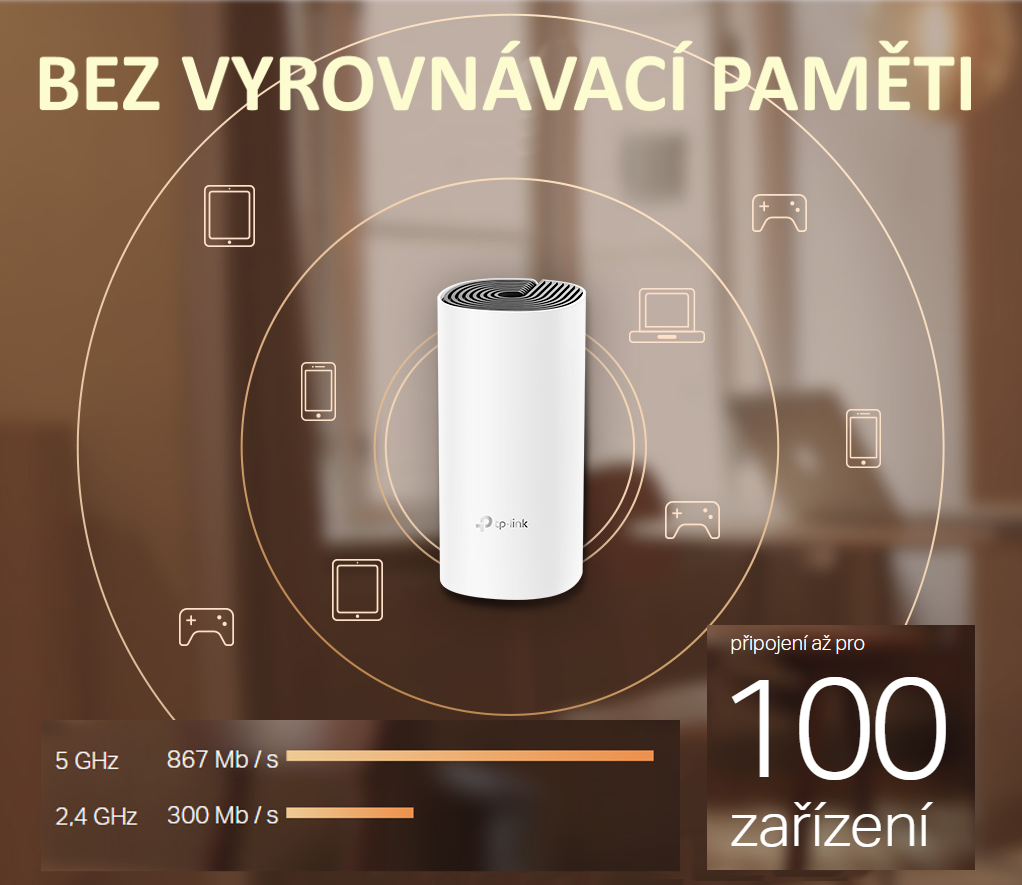 Tento balíček Deco M4 poskytuje Wi-Fi na ploše až 854 čtverečních metrů