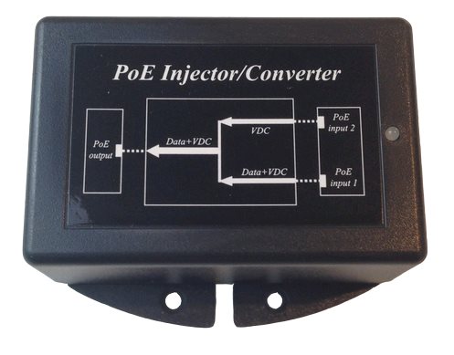 Na zařízení jsou dva porty RJ45 pro vstup a jeden port RJ45 pro výstup. Jeden ze vstupů využívá napájení a data, druhý vstupní port využívá pouze napájení. Zařízení obsahuje ochranu proti zkratu a přetížení.