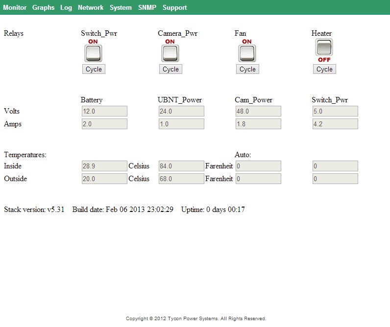 Integrované funkce logování dat a grafování umožňují uživateli zobrazit historii různých měřených parametrů. Grafické rozhraní umožňuje uživateli ovládat relé jediným kliknutím a sledovat všechny parametry měření v reálném čase prostřednictvím libovolného webového prohlížeče. Webové rozhraní umožňuje přístup a ovládání prostřednictvím stolních počítačů, notebooků, tabletů a chytrých telefonů. Aplikace Tycon APP pro IOS a Android umožňuje vzdálený přístup.