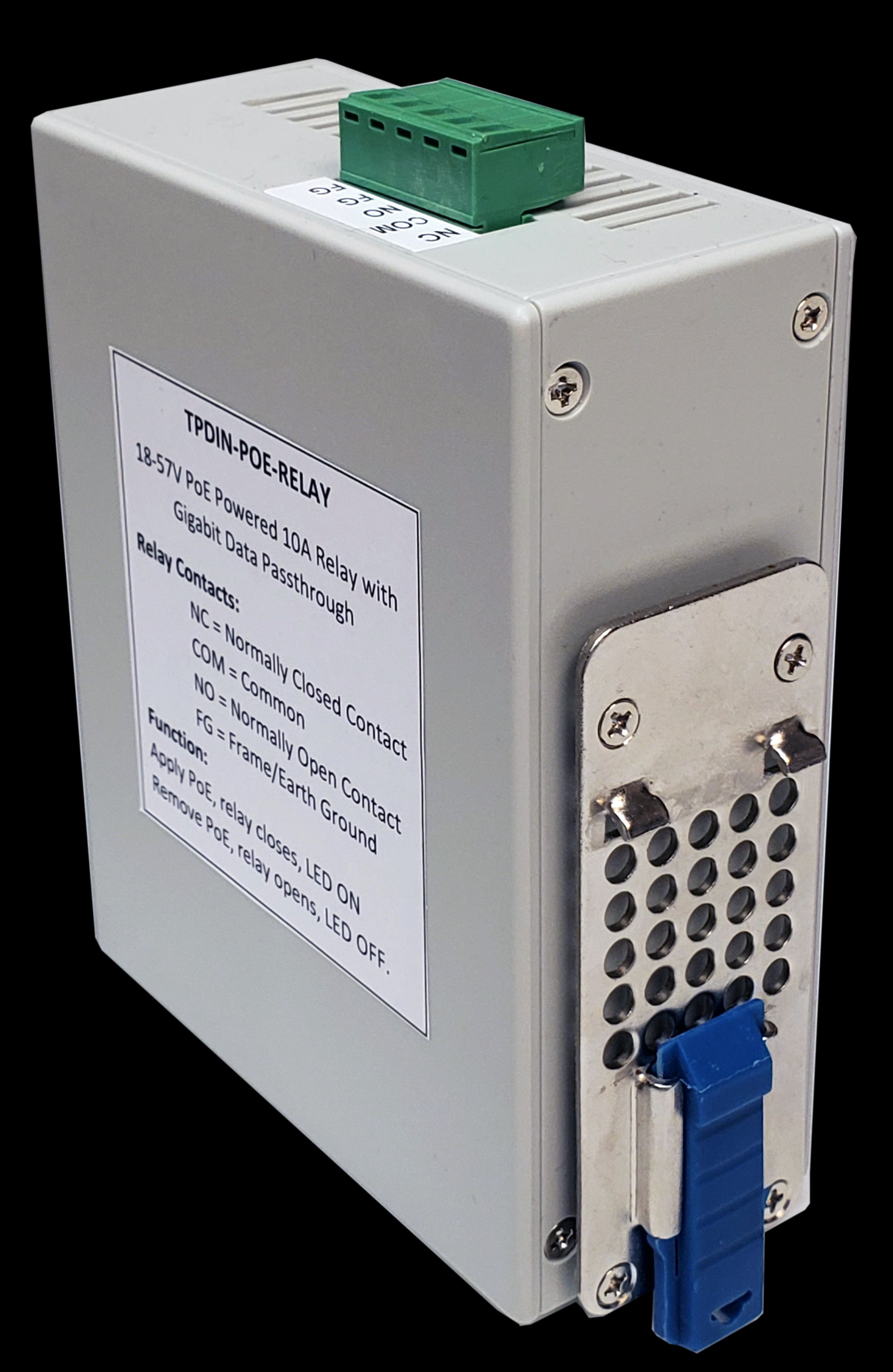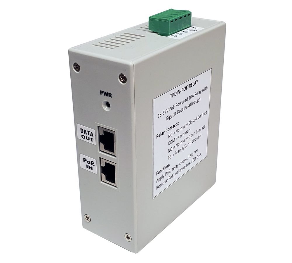 Relé TPDIN-POE-RELAY je jedinečné zařízení, které nabízí chytrý způsob, jak vzdáleně spínat proud až 10A pomocí běžného PoE switche. Princip fungování je jednoduchý a přitom geniální - pokud je PoE napájení do modulu sepnuto, sepne i relé a rozsvítí se signální LED. Po odpojení PoE napájení se relé vypne a LED zhasne. Existují dvě možnosti připojení zařízení - normálně uzavřené a normálně otevřené, lze použít oba logické stavy.