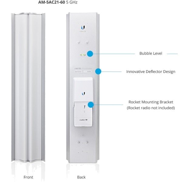 UBNT AM-5AC21-60 je 2x2 MIMO sektorová anténa, která se vyznačuje 21 dBi anténním ziskem, zvýšenou odolností proti rušení,; eliminací bočních laloků a úzkým vyzařovacím úhlem 60°.Další informace