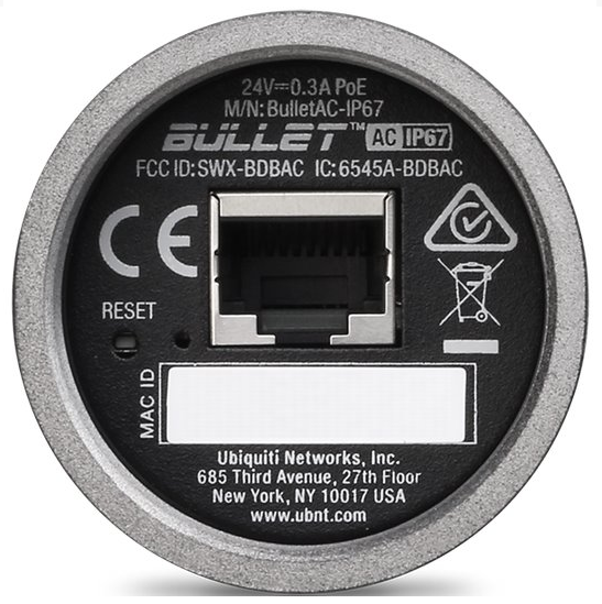 Jednotka disponuje jedním Gbit ethernetovým portem, který dovoluje využít všech možností normy 802.11ac. Napájení probíhá přes 24 V / 0.5 A DC POE adaptér, který stejně jako u předešlých bulletů není součástí balení.
