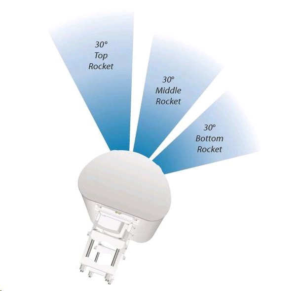 Sektorová anténa obsahuje 3 sloty na připojení jakýchkoliv Rocket jednotek určených pro 5 GHz frekvenční pásmo.