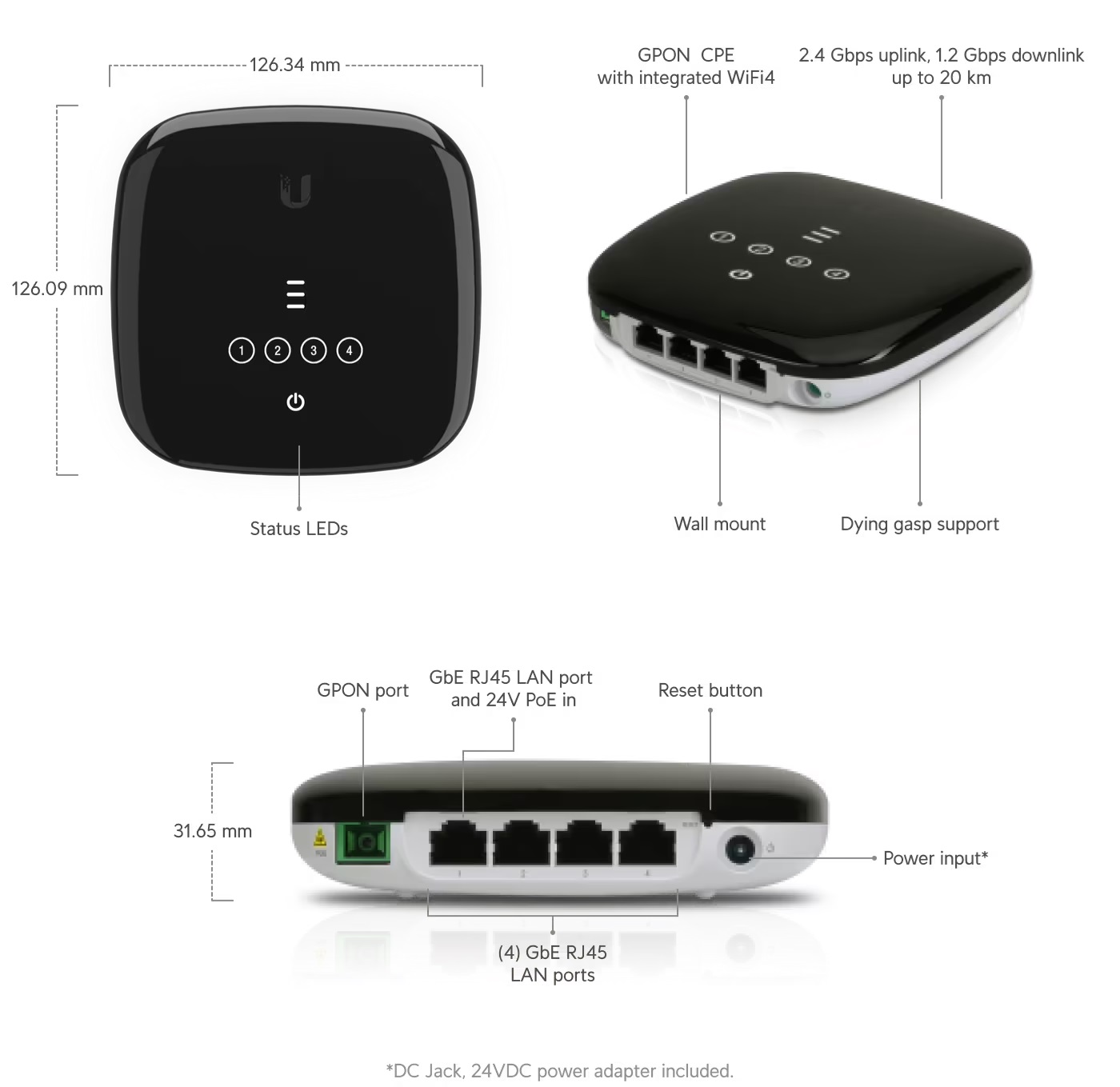 UBNT Fiber WiFi je robustní, vysoce výkonná GPON klientská jednotka ONT s funkcí routeru, čtyřmi Gbit ethernetovými porty a 300Mbps WiFi rozhraním.Další informace