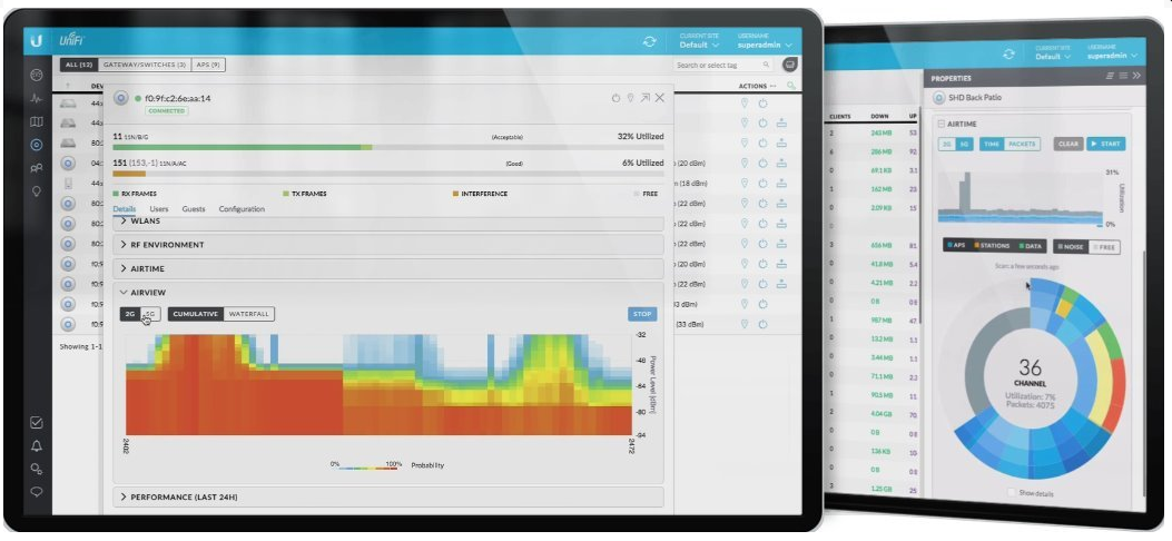 airTime - Analýza všech SSID, stanic, datových typů a rušení v reálném čase bez dopadu na výkon nebo připojené klienty.